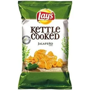 Kettle Brand Jalapeno kettle chips start with a search for undisputed potato excellence. They have a zesty, south-of-the-border flavor that deliciously strike a perfect balance between real potato-ness and the spicy-ness of jalapeno peppers. These chips are easy to eat with a satisfying burn that sneaks up on you and makes your tongue tingle. Pair these jalapeno chips with an ice-cold cerveza and then kick back with this festive, fiery flavor. When you open a bag of our Kettle Brand potato chips, you know you're getting incredible kettle chips made with authentic recipes by real people. From their farms to our kitchens and then to your home, the time and attention every Kettle Brand worker puts into their products is care you can trust. All that, plus Kettle Brand chips deliver a delicious snack that’s non-GMO Project Verified, and Certified Gluten-Free. These 2-ounce snack bags of kettle chips are great at home or on-the-go. Kettle Brand potato chips. Extra in a good way.